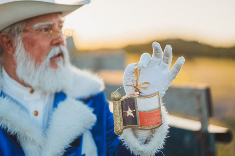 All Texan Christmas ornaments are adorned with an antique gold charm with both the Lone Star and Star of Bethlehem to celebrate the Lone Star State while honoring that the brith of Jesus Christ is the real reason we celebrate this season.