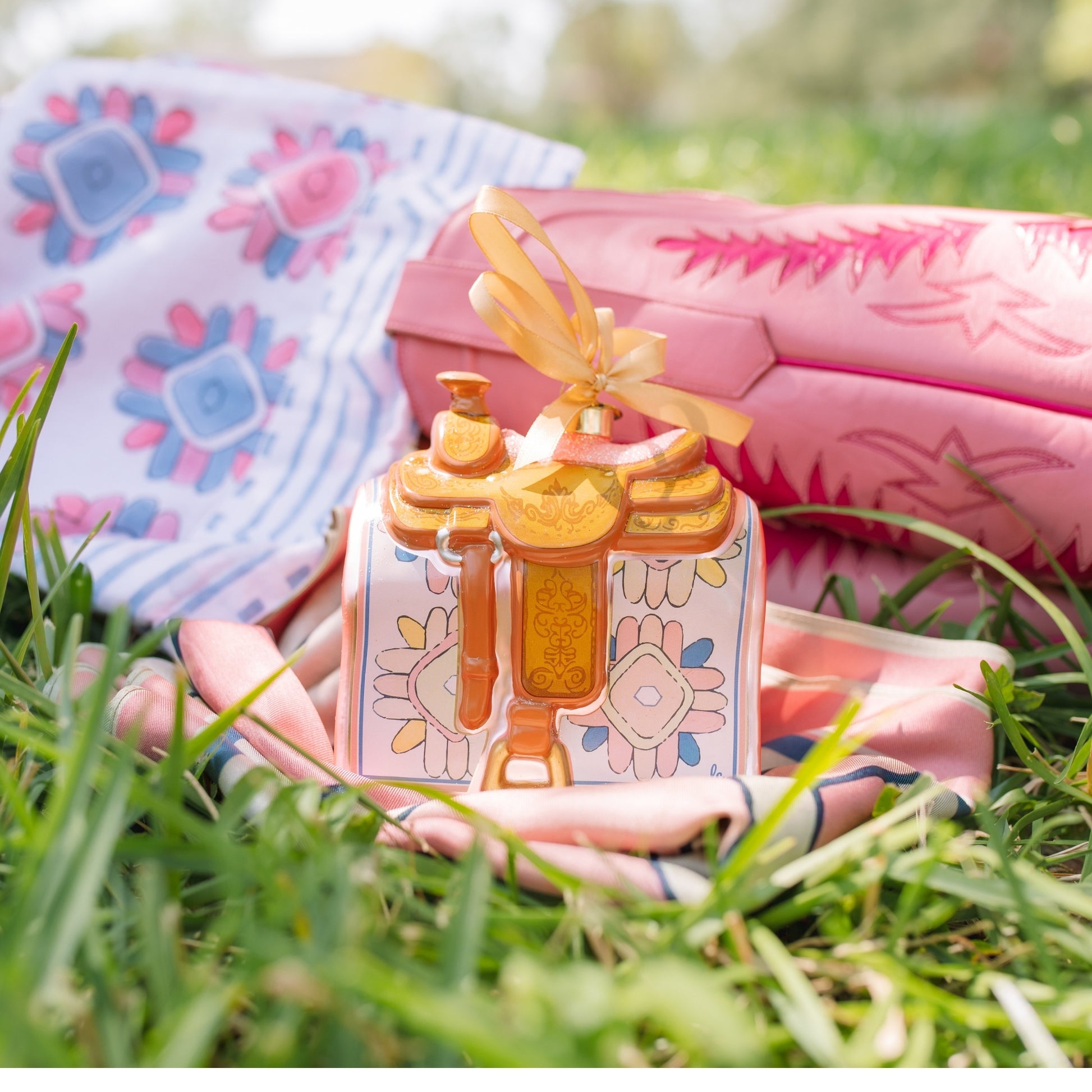 The Lauren Clyburn Texan Christmas Saddle 2025 Special Edition is a collectible hand-blown glass Christmas ornament only available for the 2025 holiday season.