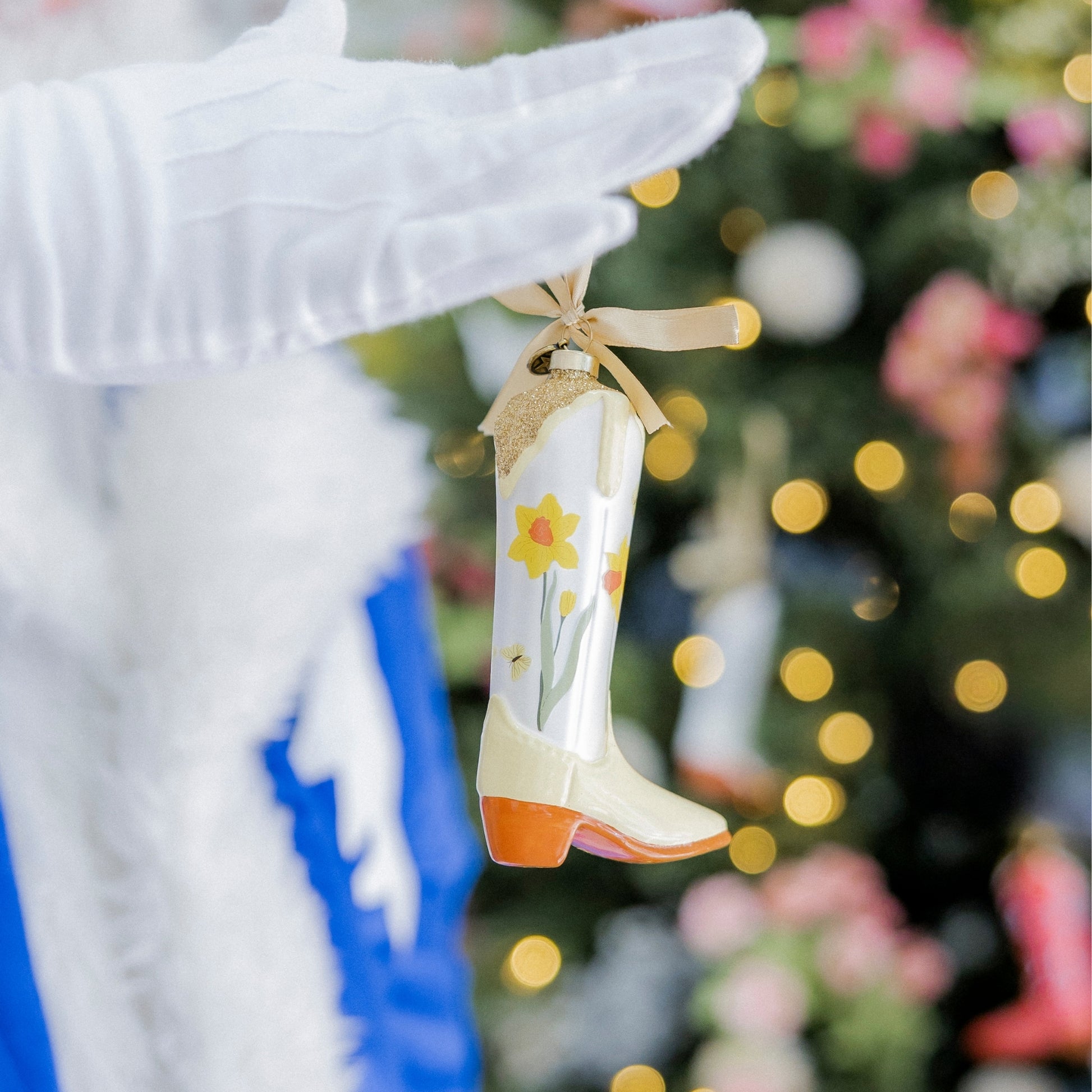 This special edition Maes Daffodil Boot was originally a collaboration with Ft. Worth watercolor artist, Catherine Cartie, now turned ornament.